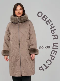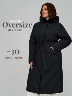 Пальто зимнее длинное оверсайз с капюшоном из норки