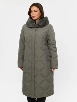 Пальто зимнее длинное оверсайз с капюшоном с мехом рекс