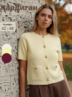 Кардиган женский укороченный вязаный на пуговице приталенный