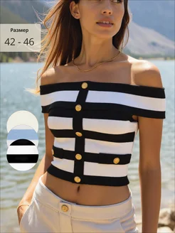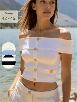 Топ женский летний нарядный вечерний вязаный открытые плечи