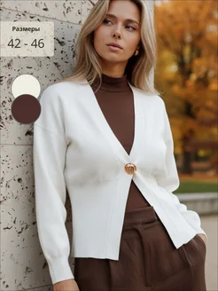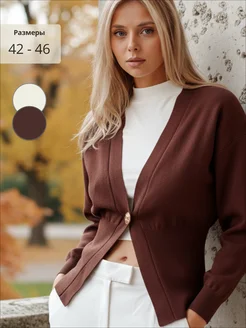 Кардиган женский укороченный вязаный с v вырезом приталенный