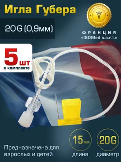 Игла Губера для порт систем бабочка, 20Gх15 мм, 5 шт
