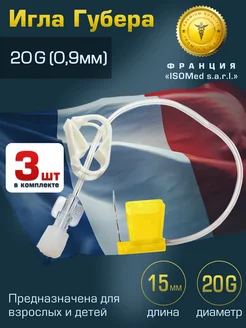 Игла Губера для порт систем бабочка, 20Gх15 мм, 3 шт