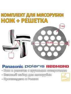 Нож + решетка 7 мм мясорубки Panasonic, Redmond, Polaris