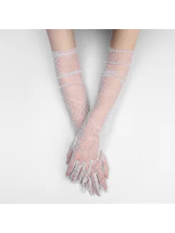 Перчатки женские в горошек, белые Праздники