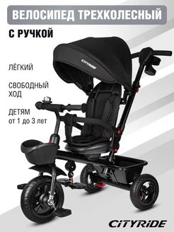 Велосипед детский трехколесный с ручкой CITYRIDE с фарой