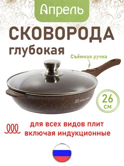 Сковорода с крышкой индукционная 26 см со съемной ручкой