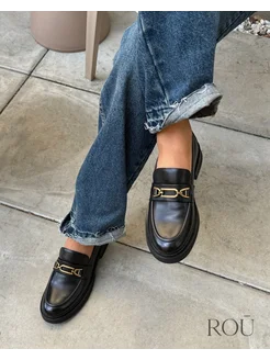 Лоферы из натуральной кожи c с бронзовой пряжкой