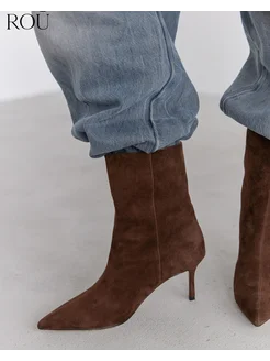 Замшевые ботильоны без замка