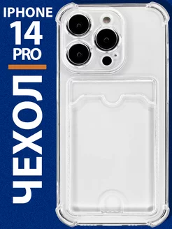 Чехол на 14 Pro с карманом прозрачный силиконовый