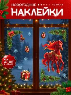 Новогодние наклейки Огненная лошадь