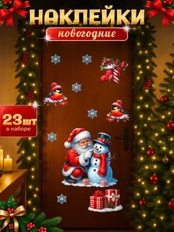 Новогодние наклейки Дед Мороз и Снеговик