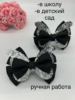 Бант для волос девочке черный школьный на резинке