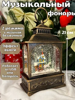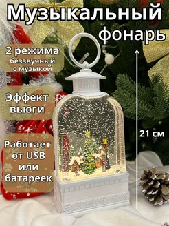 Фонарь новогодний музыкальный светильник со снегом 2026