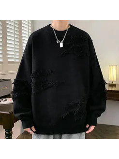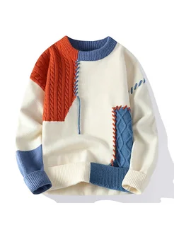 Свитер вязаный свободный пуловер в стиле пэчворк