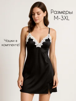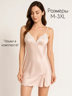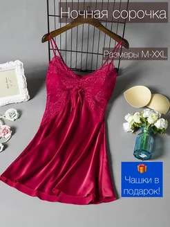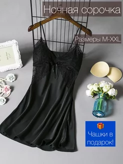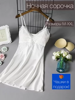 Ночная сорочка с кружевом, ночнушка на бретельках