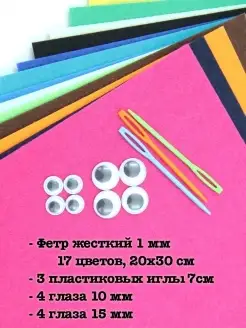 Фетр жёсткий 17 цветов, 3 иглы, 8 глазок