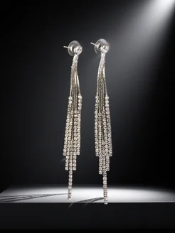 Серьги бижутерия висячие белые кристаллы на цепочке