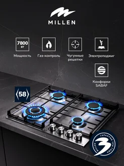 Варочная панель газовая 4 конфорки MGHGD 6501 BB