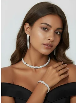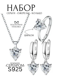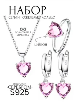 Комплект украшений серьги, цепочка с кулоном, кольцо