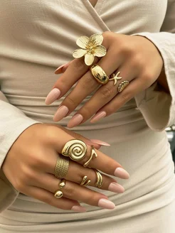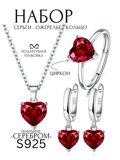 Комплект украшений серьги, цепочка с сердцем, кольцо
