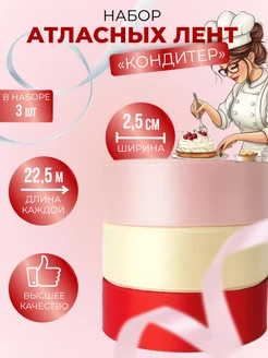 Лента атласная набор 2.5 см для рукоделия и подарков 3 шт