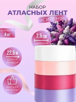 Лента атласная набор 2.5 см для рукоделия и подарков 4 шт