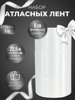Лента атласная 5 см 3 шт для рукоделия и подарков белая