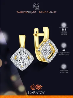 Золотые серьги 585 пробы с танцующими бриллиантами