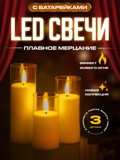 Свечи светодиодные мерцающие на батарейках набор 3 шт