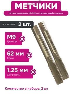 Метрические метчики 2 шт М9х1.25 мм для резьбы по металлу