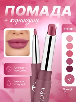 Помада матовая и карандаш для губ 2 в 1