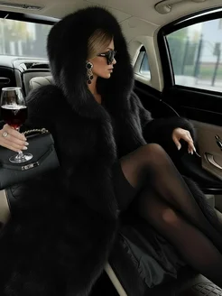 ЭкоШуба женская искусственная черная с капюшоном