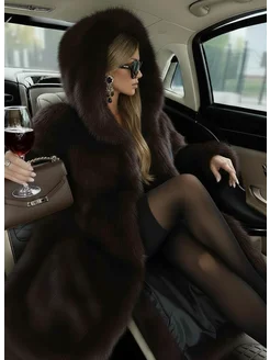 Шуба искусственная женская с капюшоном