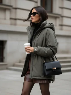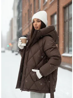 Куртка зимняя оверсайз удлиненная с капюшоном