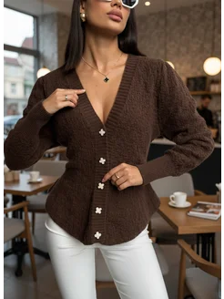 Кардиган вязаный укороченный на пуговицах олд мани жакет