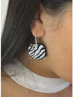 Серьги бижутерия геометрия ручной работы черно белые Зебра