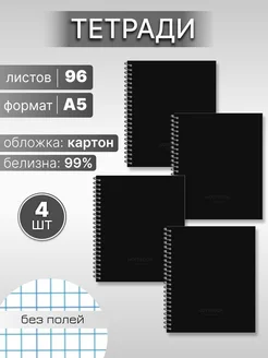 Тетрадь 96 листов в клетку на пружине черная набор 4 шт