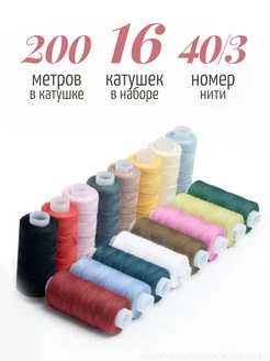 Нитки для шитья №40 3, набор 16 шт, 100%хлопок