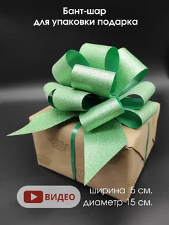 Бант упаковочный большой для подарка зеленый с блестками 1шт