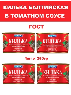 Килька балтийская в томатном соусе БАРС 250гр х 4шт