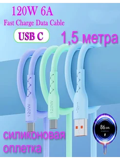 Кабель быстрая зарядка 120W 6А силикон A C 1.5 метра