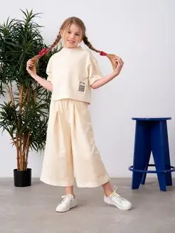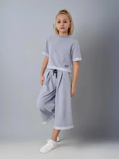 Летний костюм для девочки широкая футболка и штаны кюлоты