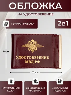 Обложка кожаная для удостоверения МВД с зажимом для денег
