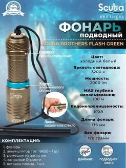 Фонарь подводный SB FLASH 2000lm, холодный белый свет, с АКБ