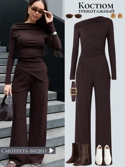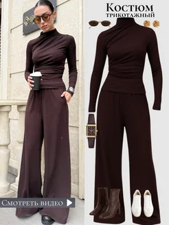 Нарядный костюм трикотажный теплый брючный