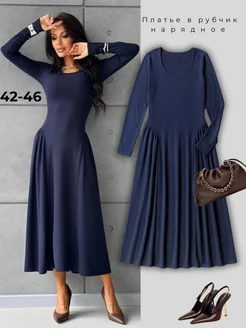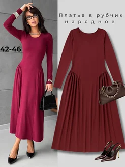 Трикотажное платье теплое с длинным рукавом