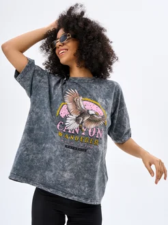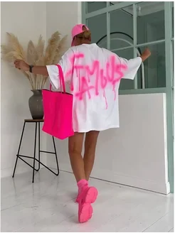 Футболка оверсайз у2к с принтом на спине удлиненная