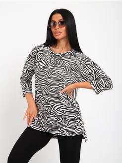 Кофта тонкая без начеса с принтом джемпер удлиненный