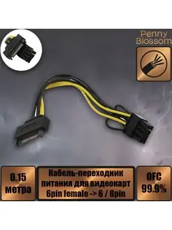 Переходник питания для видеокарт 1SATA M- 6 8pin, 15 см